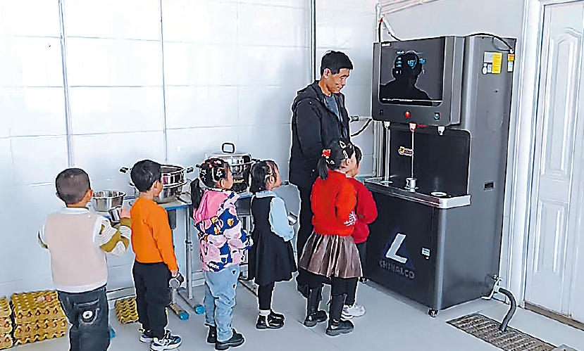 本網(wǎng)訊? ?“水來(lái)了,水來(lái)了!”在甘肅省靖遠(yuǎn)縣若笠鄉(xiāng)富民小學(xué),學(xué)生們歡呼著來(lái)到新安裝的飲水機(jī)前排隊(duì)接水。近日,蘭州鋁業(yè)為若笠鄉(xiāng)富民小學(xué)和富民幼兒園安裝了3臺(tái)總價(jià)值4.5萬(wàn)元的集加熱和凈水功能于一體的直飲水機(jī),有效改善了師生飲水條件。