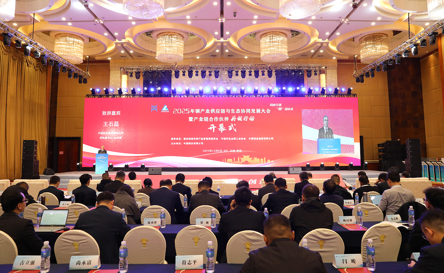 本網訊? ?12月9日,由國務院國資委、中國有色金屬工業協會、中鋁集團指導,中國銅業主辦的銅產業供應鏈與生態協同發展大會暨產業鏈合作伙伴共鏈行動在昆明舉辦。中鋁集團黨組副書記、總經理王石磊出席會議并致辭,中國工程院院士唐菊興、楊斌應邀出席會議,中鋁集團黨組成員、副總經理董建雄主持開幕式,中鋁集團黨組成員、副總經理魏成文主持中國銅業科技成果發布和集中簽約儀式。